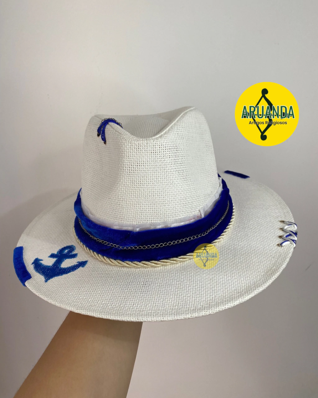 • Faixa de veludo azul com detalhe em desfiado branco, cordao bege e corrente prata